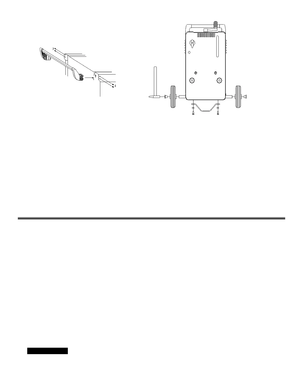 2. Wheels and Pull Handle - Slide the axle through the opening in the bottom of the welder cabinet. Insert axle