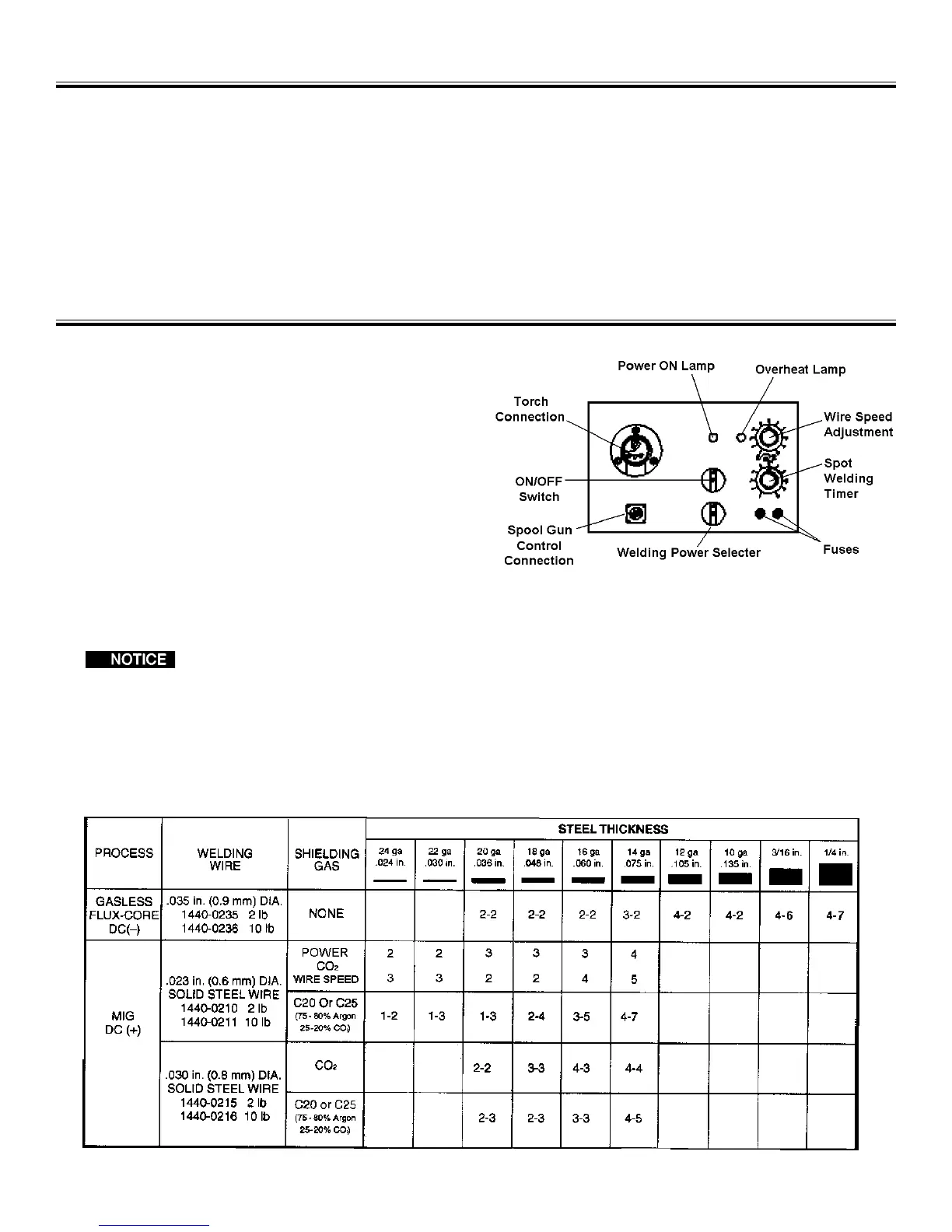 Table 1:Approximate Settings for Welding