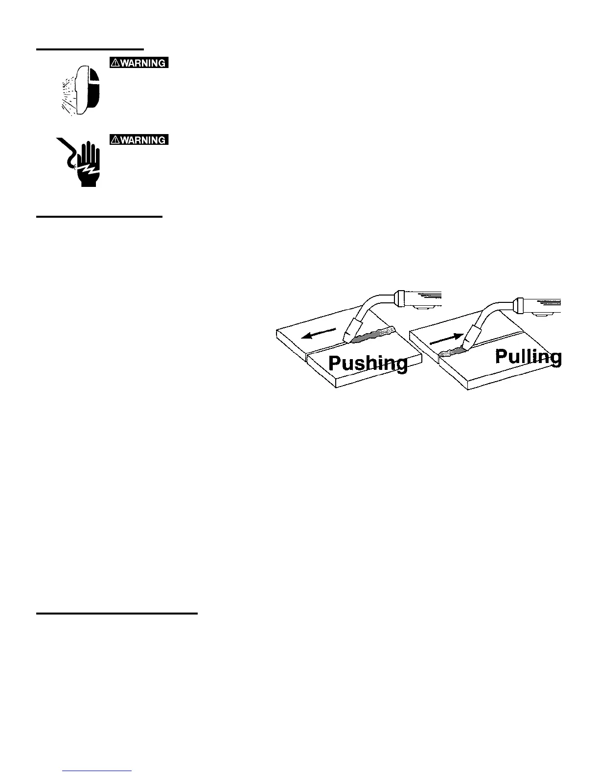 b. Aluminum welding uses either direction of gun travel. However, pushing leaves a weld that is cleaner in