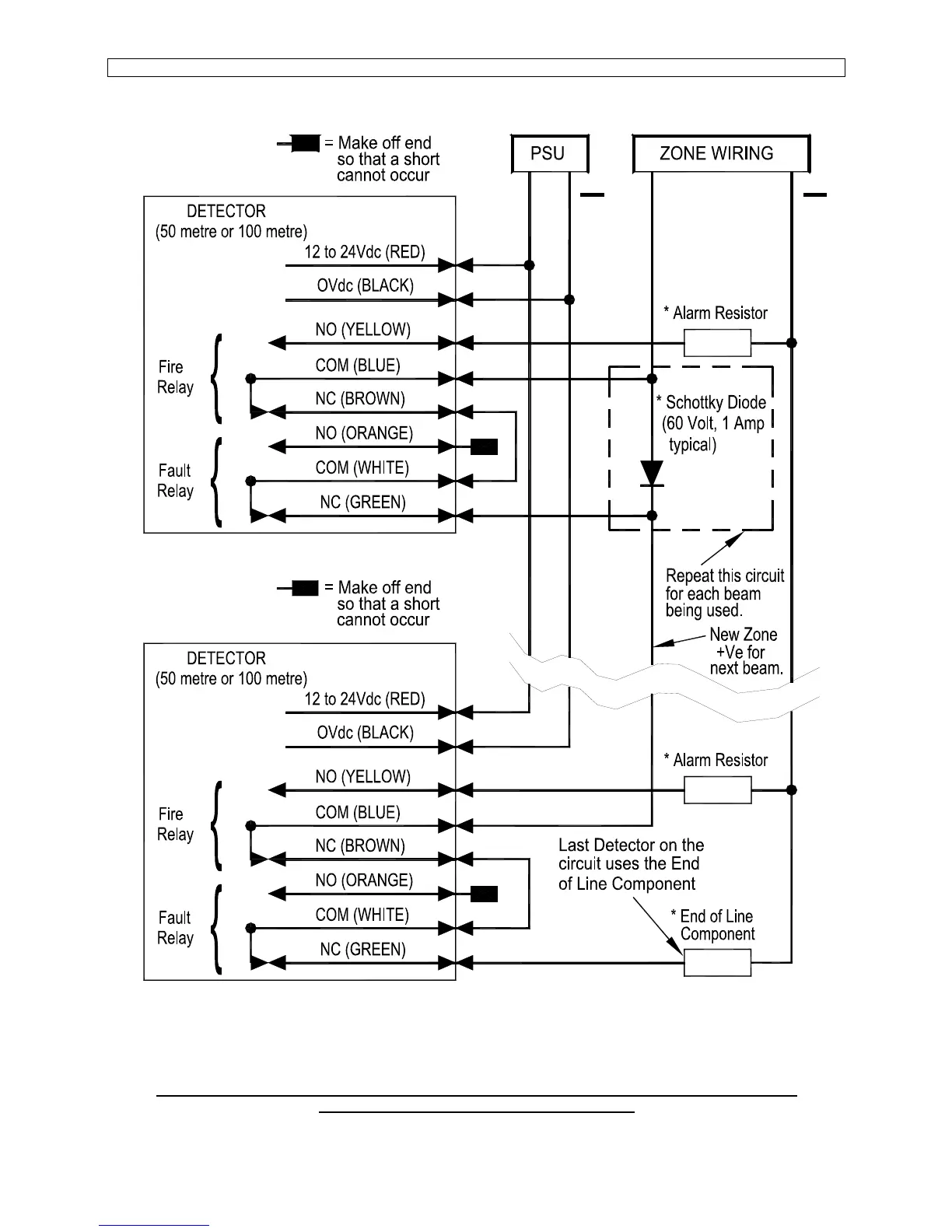 Contact fire panel manufacturer for values of ‘Alarm Resistor’ and ‘End of Line Component’.