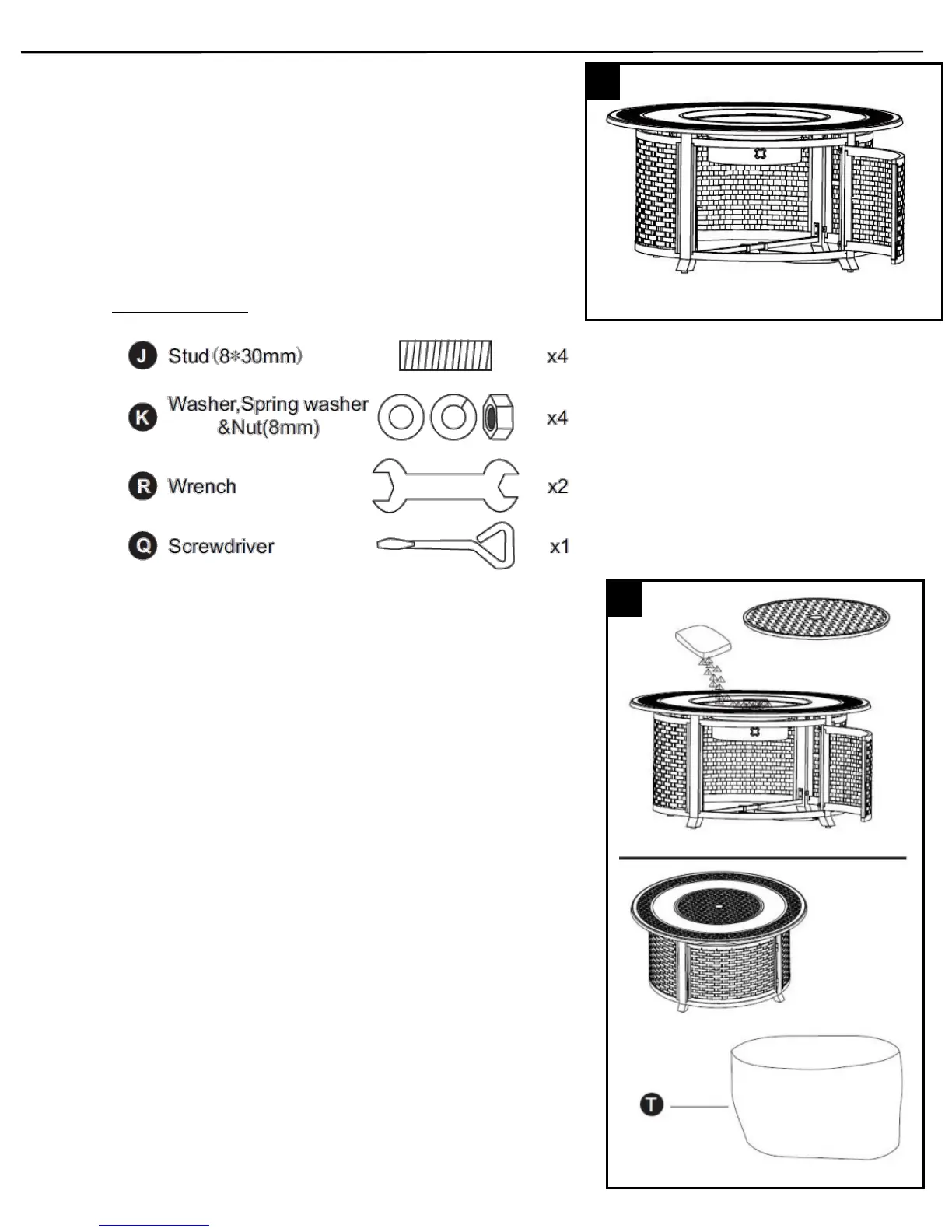 you may cover it with the Protective Fire Pit Cover (T). DO NOT PUT