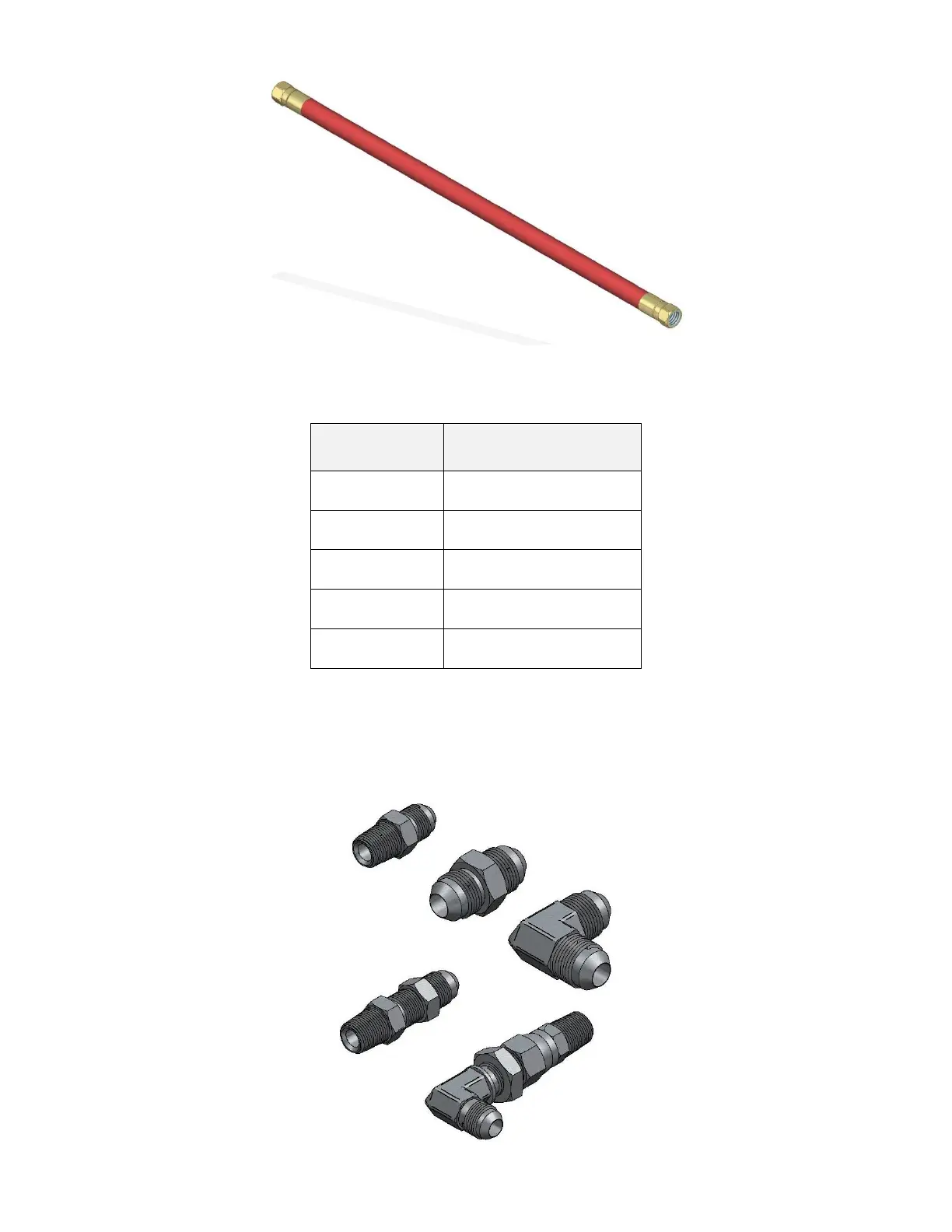 Table 10 – Flexible Hose Part Numbers for 940555/941055/942055 Unit Assembly