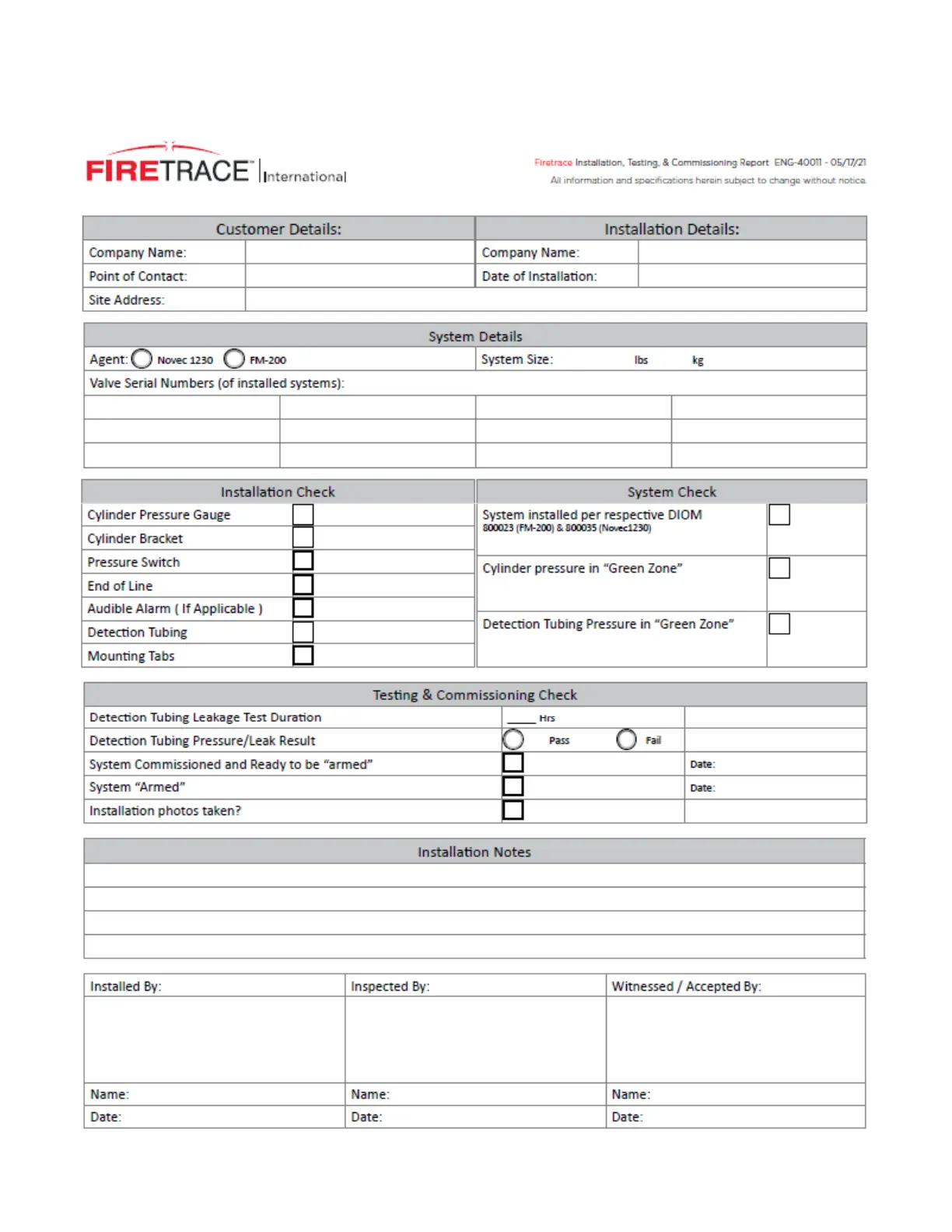 FIRETRACE FK-5-1-12 - Appendix C - Commissioning Document Checklist