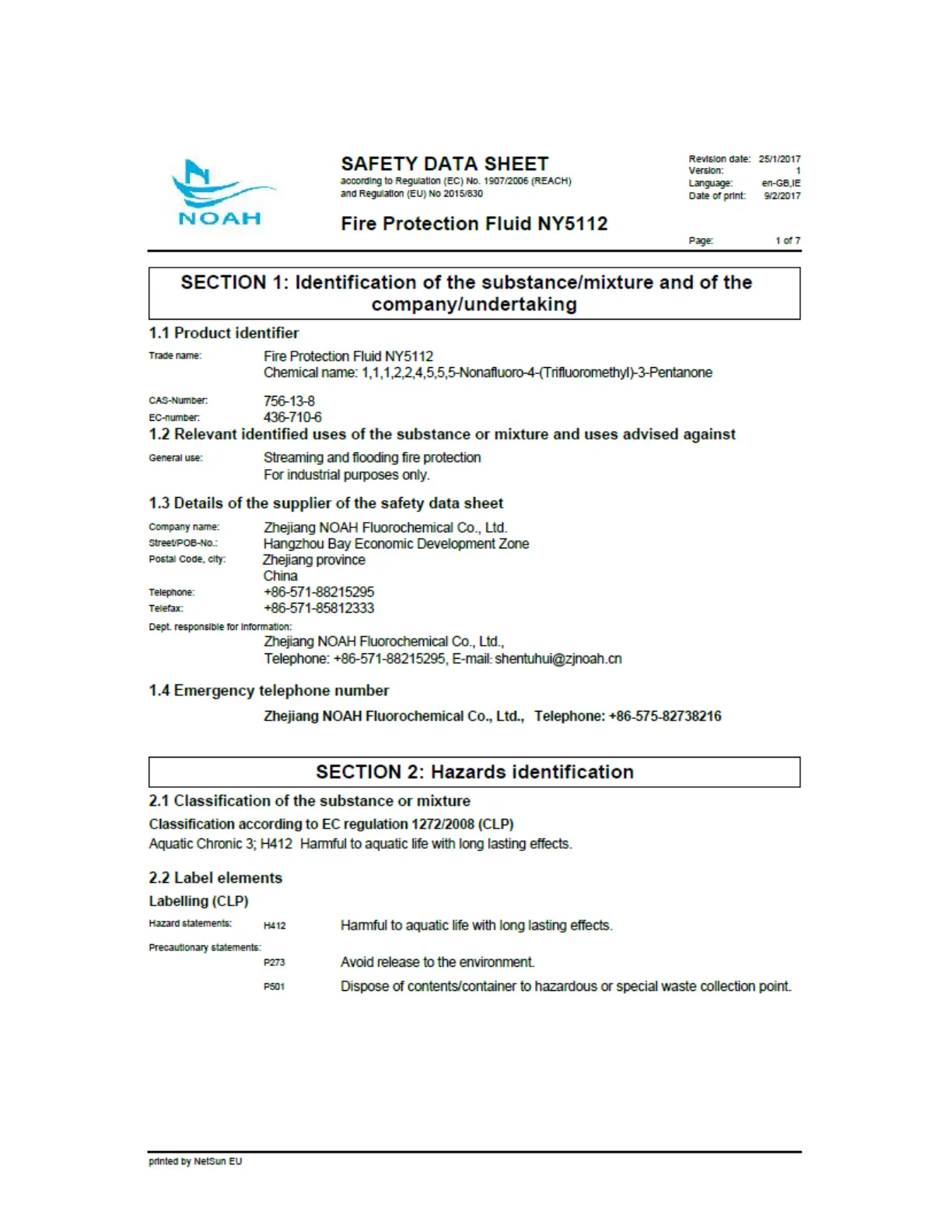 APPENDIX H - SAFETY DATA SHEET NOAH NY5112
