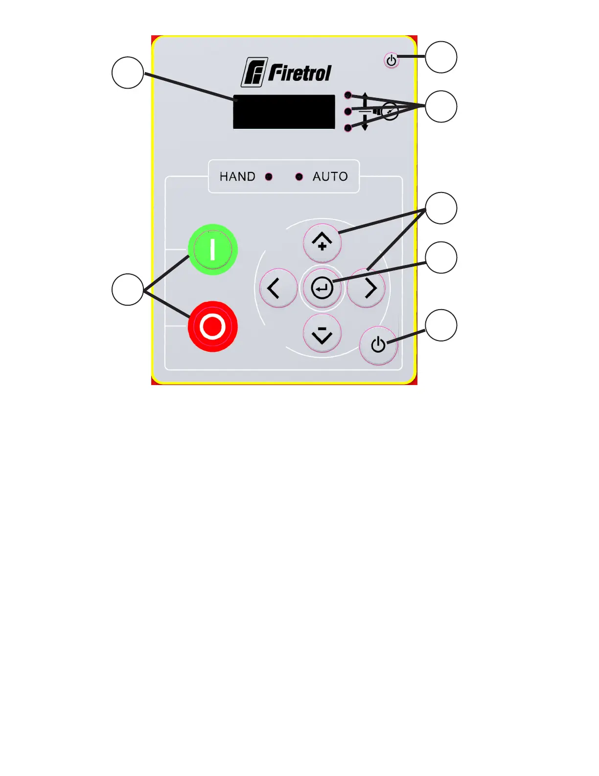 7. Start and Stop Pushbuttons. These are on the left-hand side of the keypad. Pressing the green