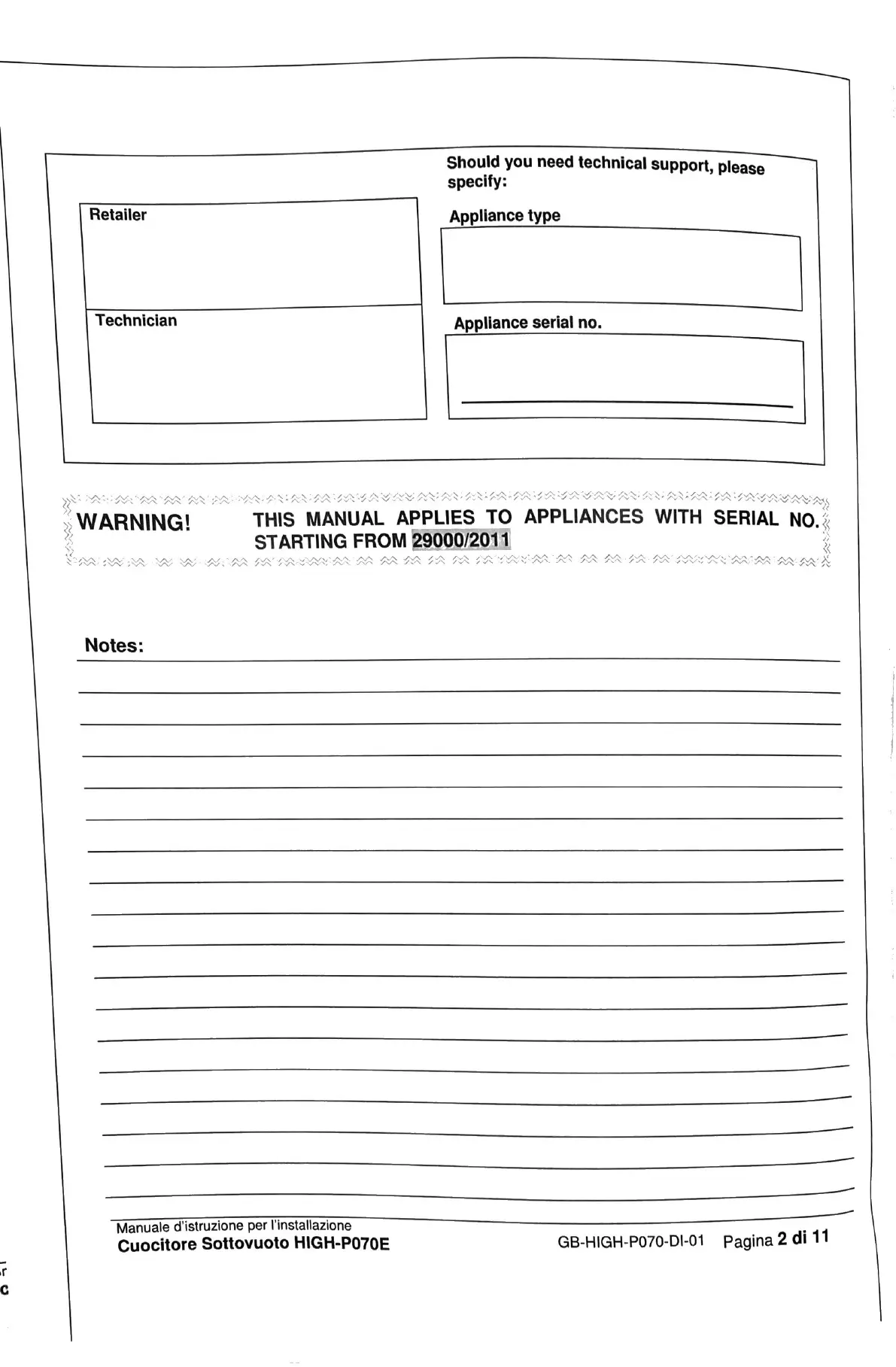Cuocitore Sottovuoto HIGH-P070E GB-HIGH-P070-DI-01 Pagina 2 di 11
