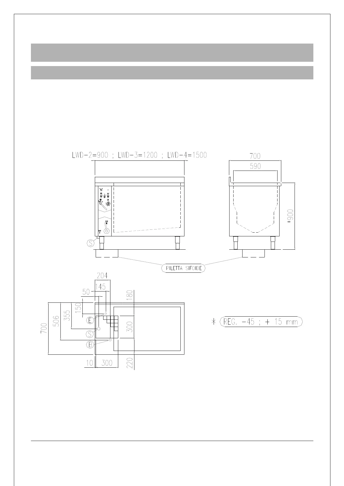S = OUTLET ø40 (WITH FLOOR DRAIN TRAP 300x300 mm)
