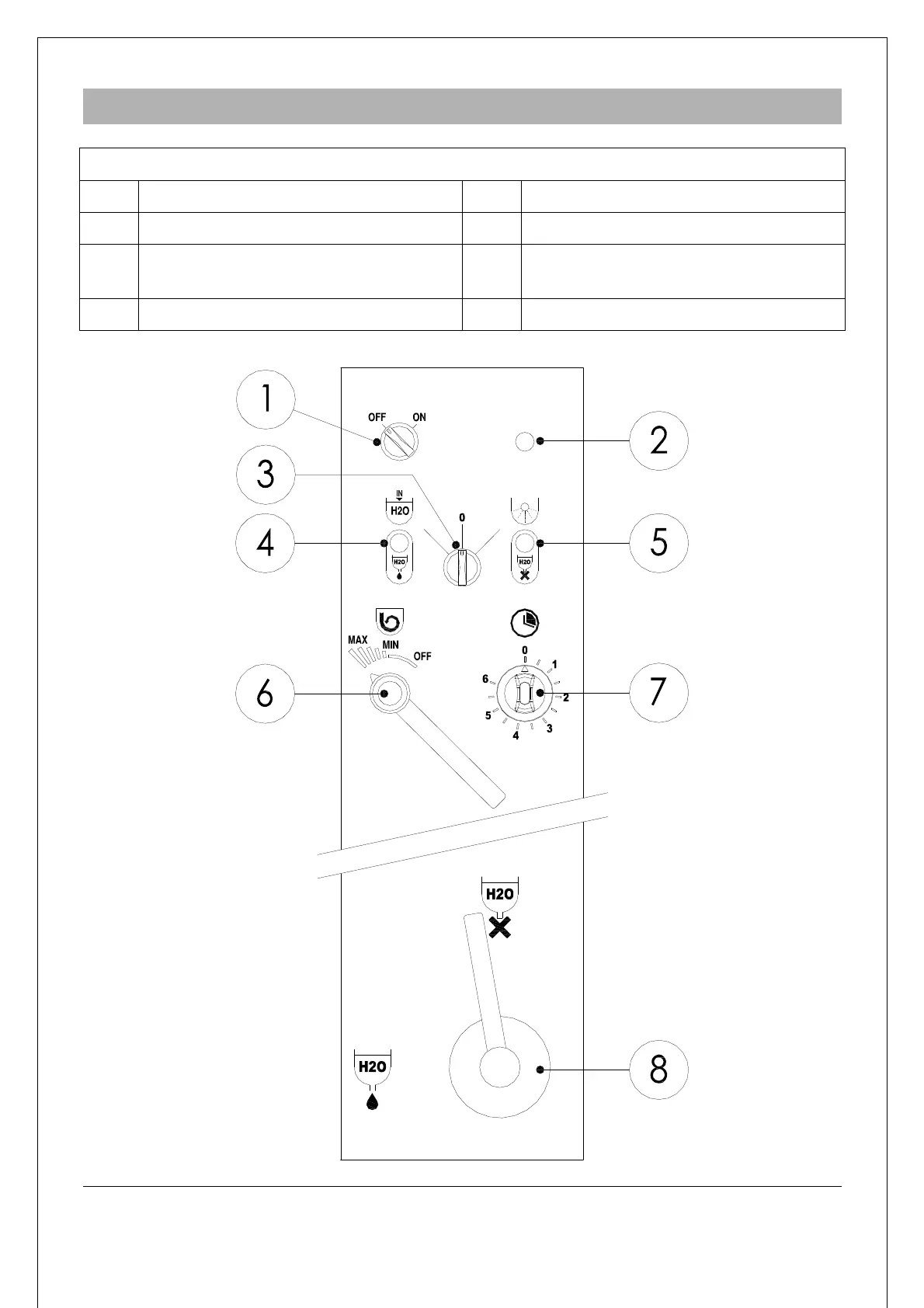 2 Indicator Tension ON 6 Regulator for whirlpool intensity