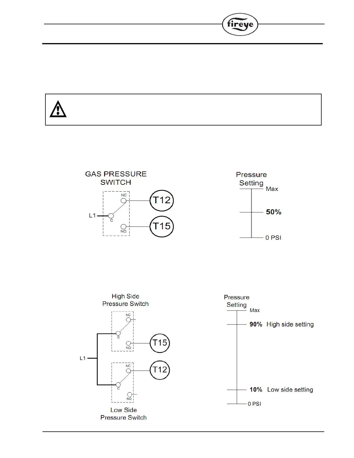 This setup requires that the gas pressure switch be adjusted to ½ the gas train pressure. The rule of operation