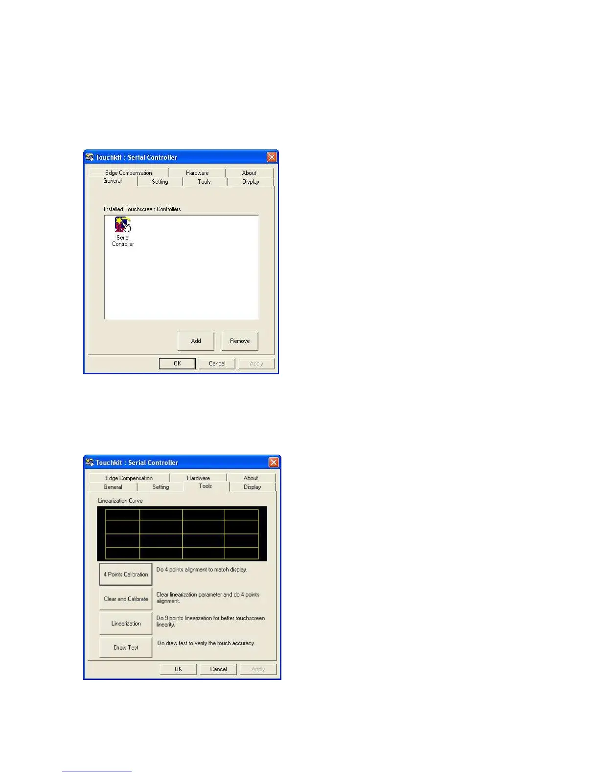 • Calibrate the touch screen with the 4 Points Calibration button.