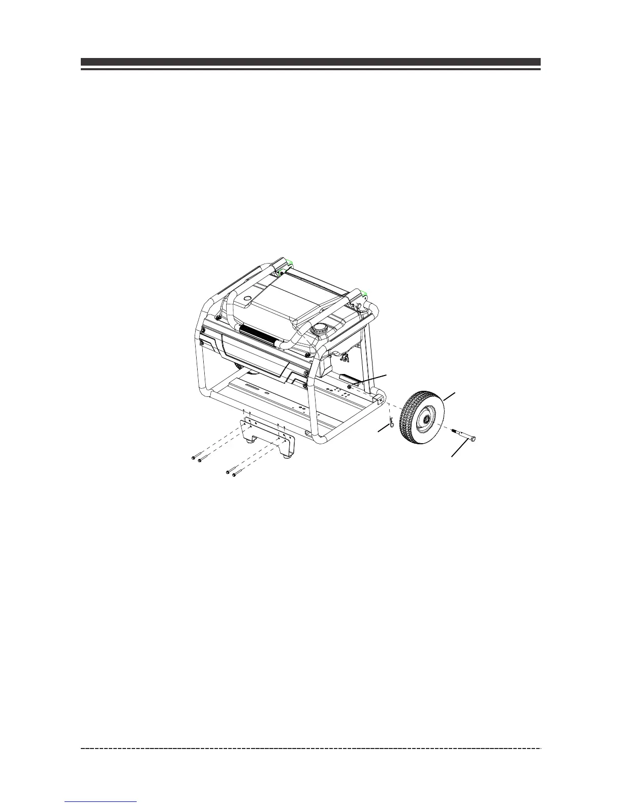 1. Attach the support leg to the generator frame with cap screws and nuts.