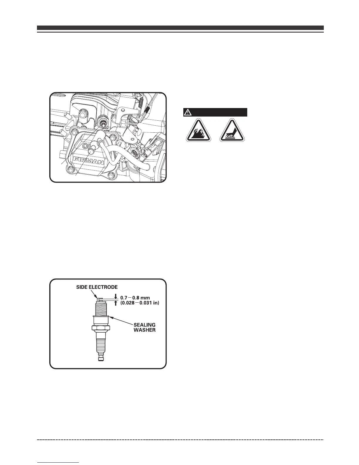 (d) Ajustez l' écart d'électrode de 0,7 à 0,8 mm