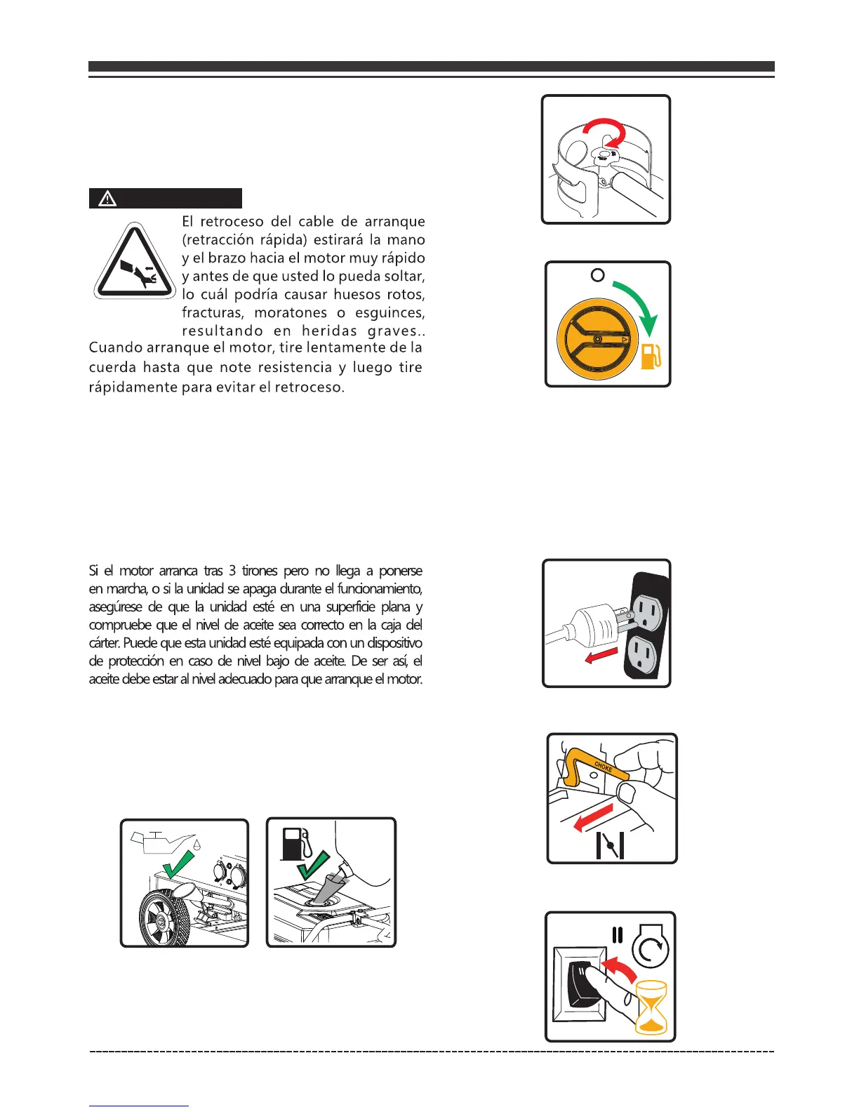 Tras el primer tirón, mueva la palanca del estrangulador