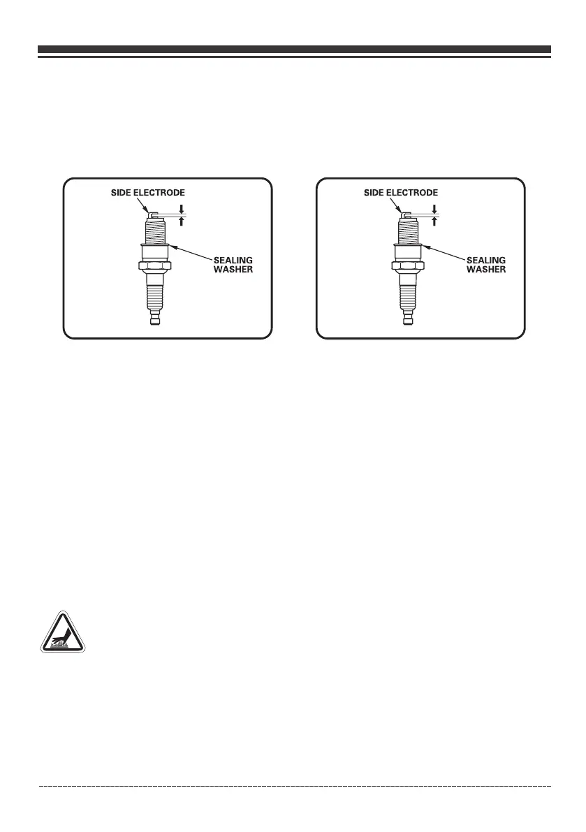 (e) Seat spark plug in position and thread by hand to prevent cross threading.