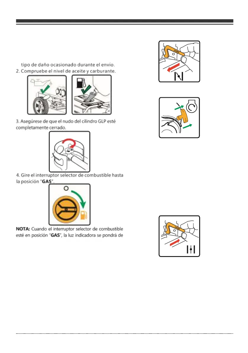 1. Antes de arrancar el generador, compruebe que no haya partes