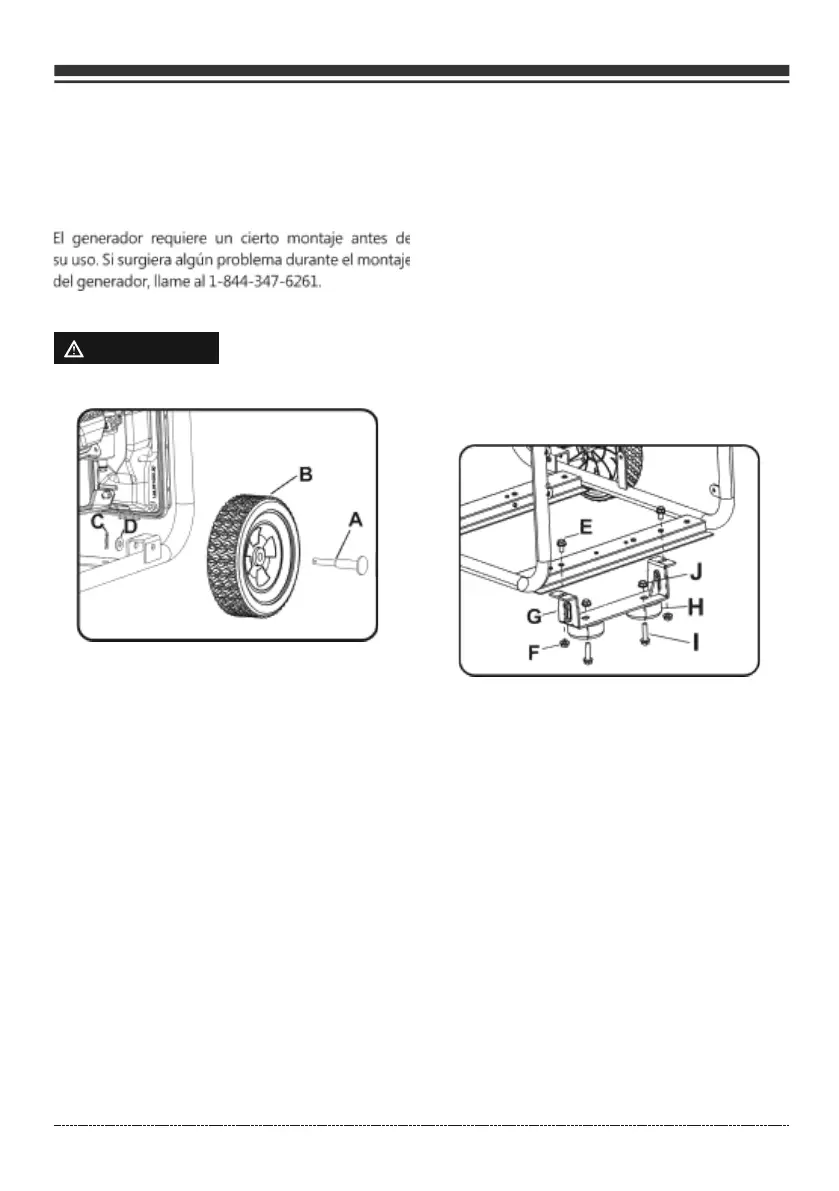 4. Ajuste el tornillo E y la tuerca F con las llaves