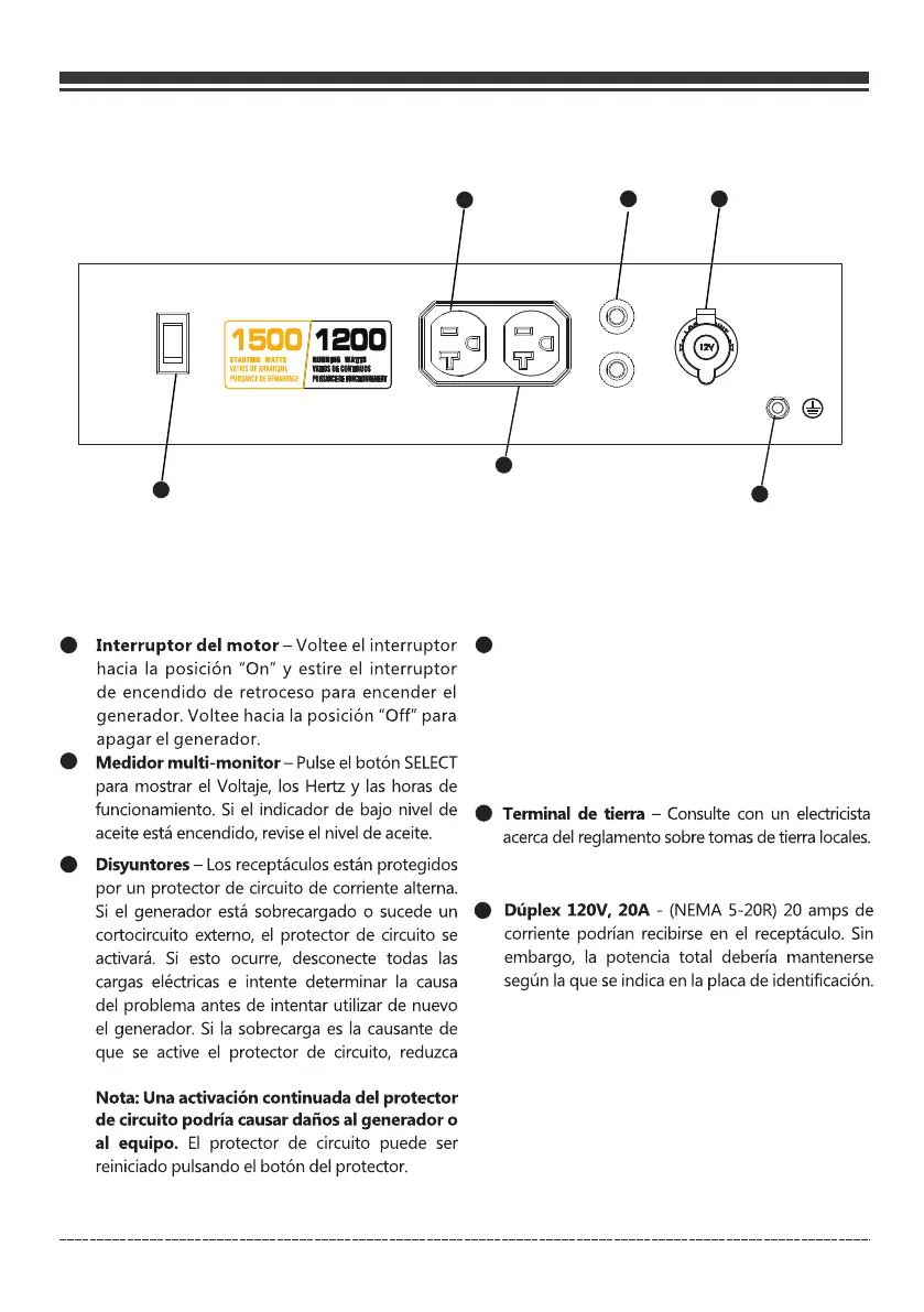 La potencia total recogida desde todos los receptáculos no debe ser superior a la potencia de la