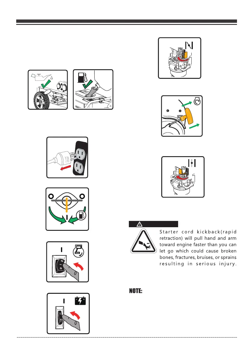 Keep choke lever in “START” position for only 1