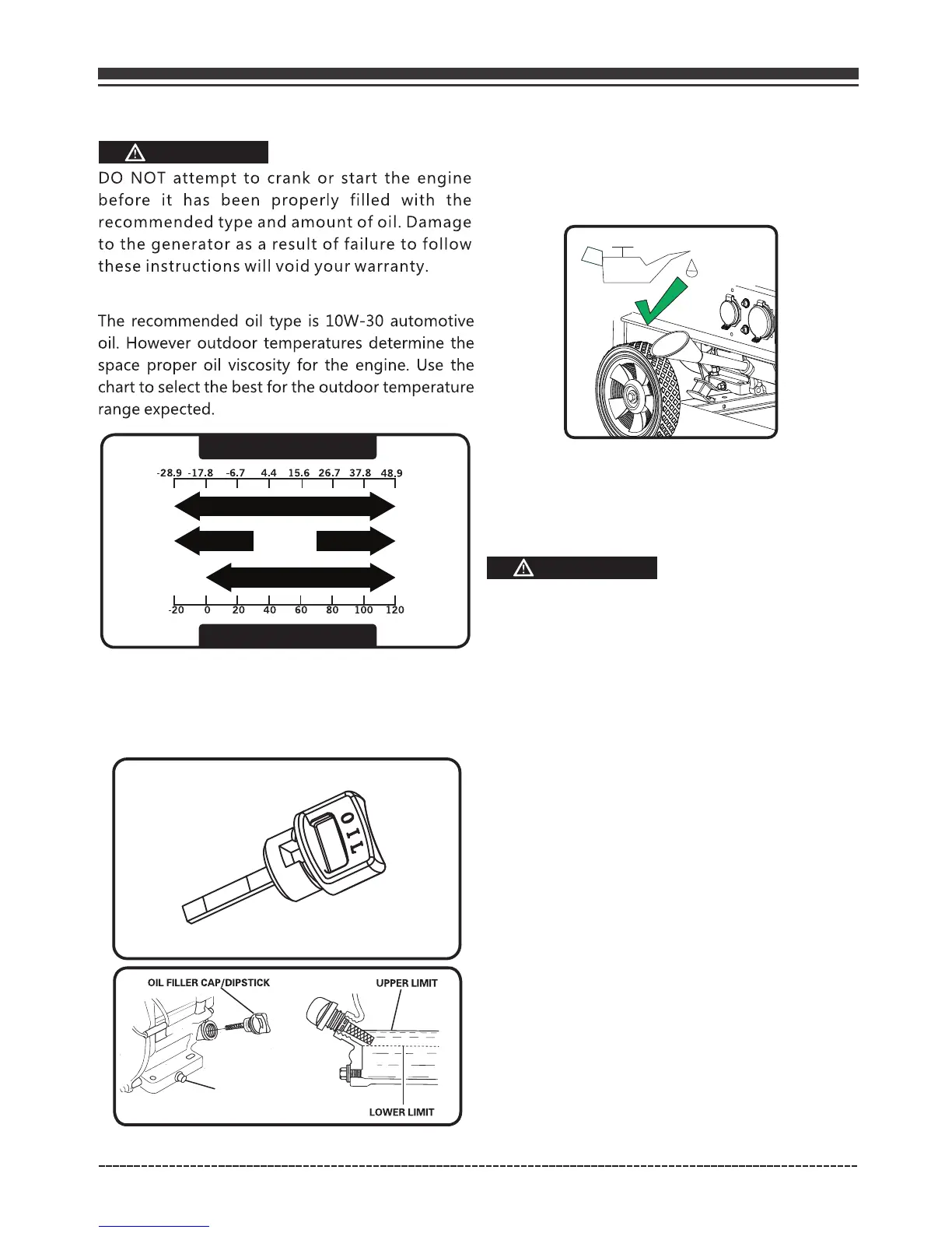 Firman P08003 - ADD ENGINE OIL; Oil Type, Viscosity, and Filling; Low Oil Shutdown System