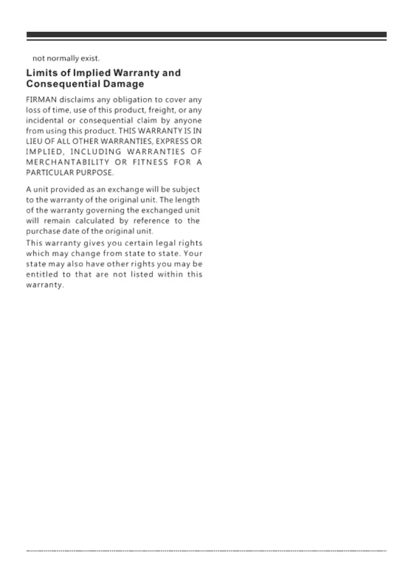 an ultimate purchaser. FIRMAN warrants to the ultimate purchaser and each subsequent purchaser that the engine is: