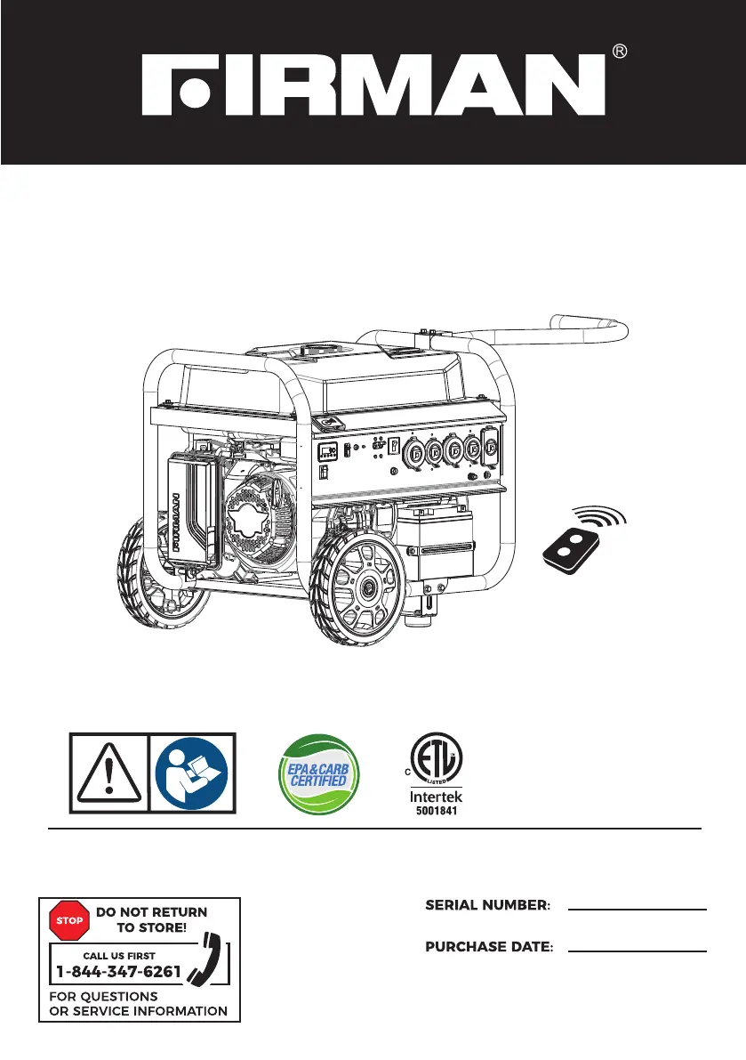 If your Firman Portable Generator won't start, runs rough, or shuts down, several factors could be at play. Ensure the fuel valve is in the “ON” position and that the indicator light is solid red. Check for sufficient oil level, a clean air cleaner, and fresh gasoline. Connect the spark plug wire, or replace the spark plug if it’s bad. Drain any water from the gasoline. If flooded, wait 5 minutes before re-cranking. Also, check the battery and charge if necessary or manually start the engine. If the fuel filter is clogged or dirty, clean or replace it.