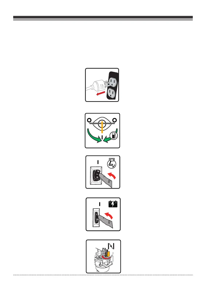 1. Antes de poner en marcha el generador, compruebe si hay piezas sueltas o faltantes y si hay