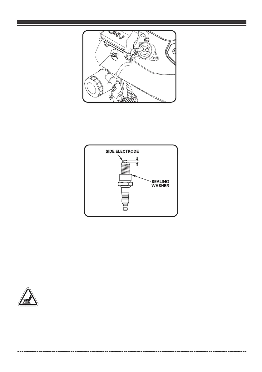 (d) Adjust the electrode gap to 0.028” to 0.031” (0.7 to 0.8 mm).
