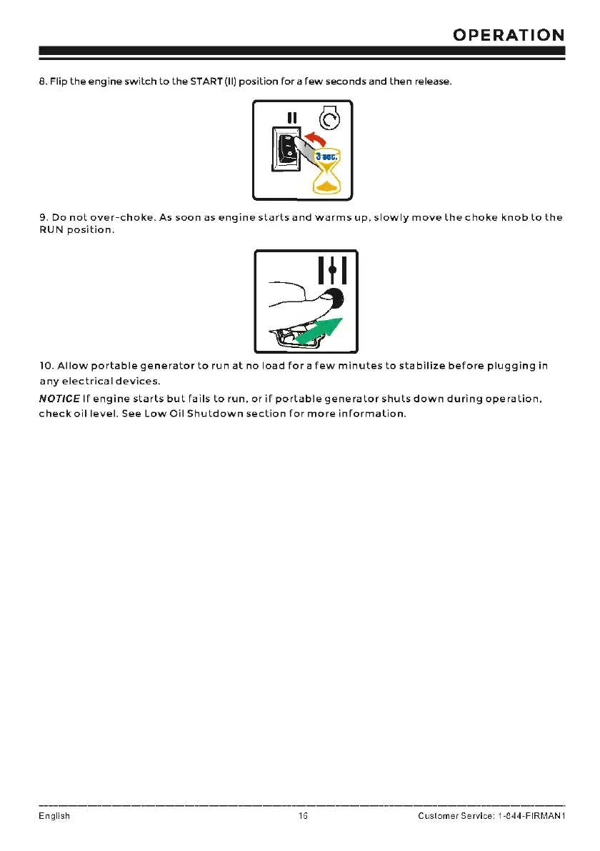 NOTICE If engine starts but fails to run, orif portable generator shuts down during operation,