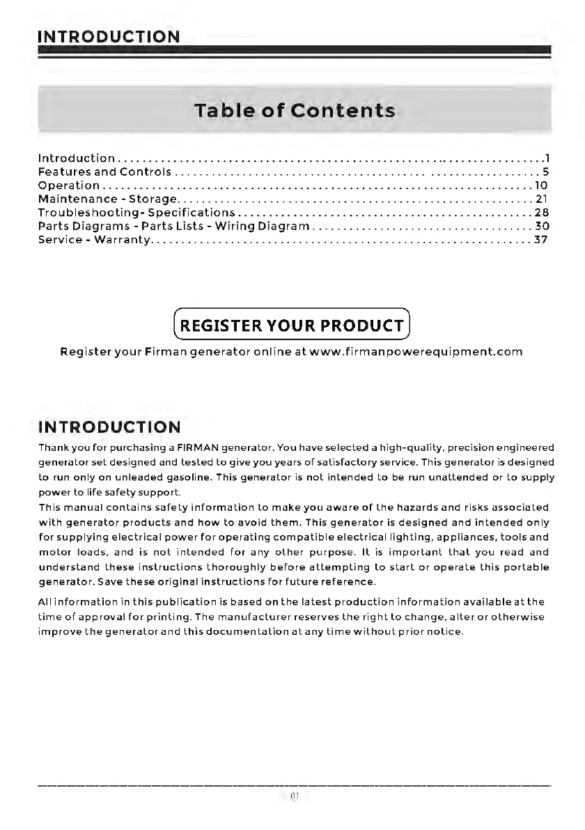 Thank you for purchasing a FIRMAN generator. You have selected a high-quality, precision engineered