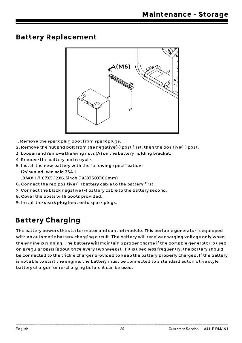 the engine is running. The battery wil I maintain a proper charge if the portable generator is used