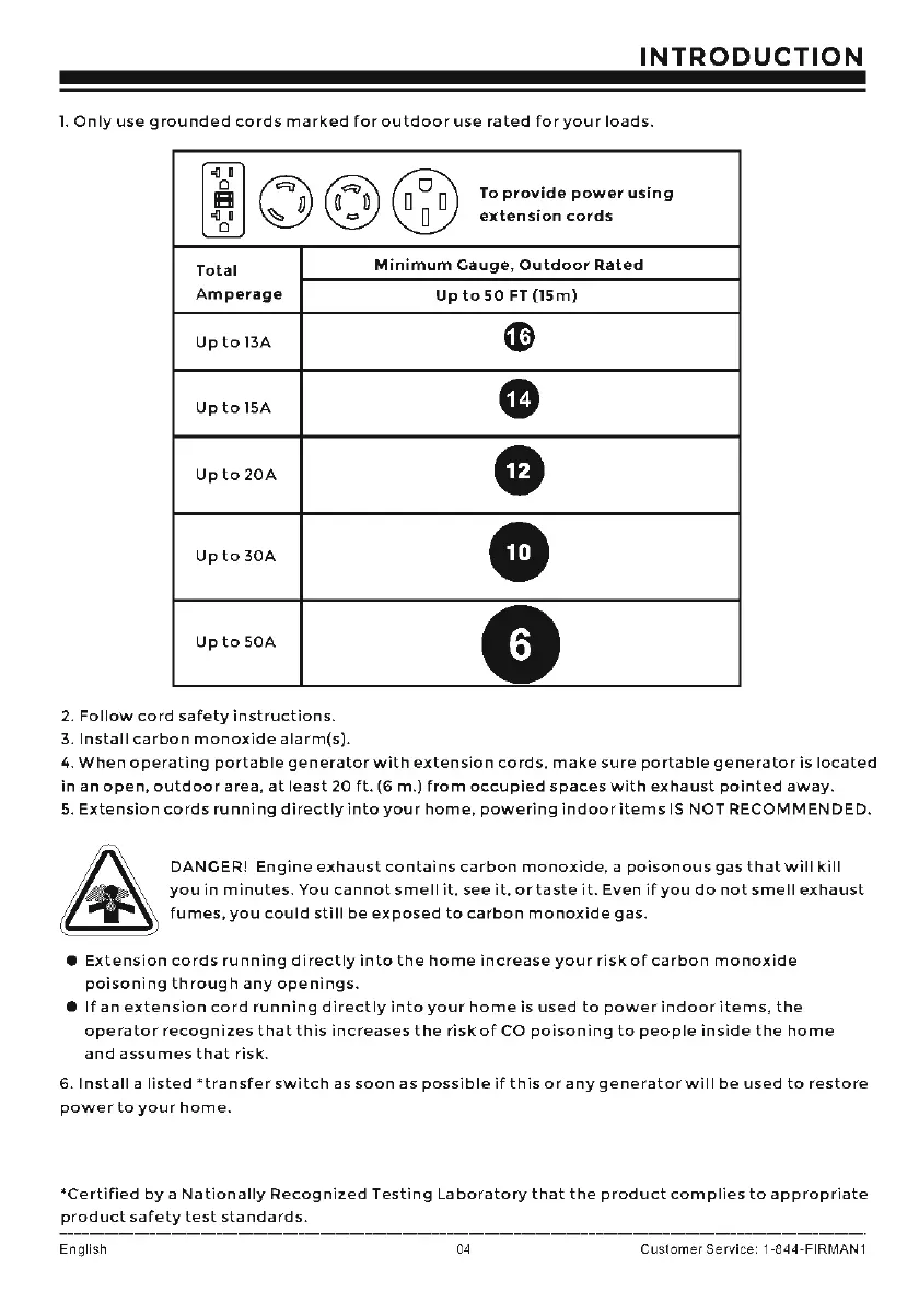 4. When operating portable generator with extension cords, make sure portable generator is located