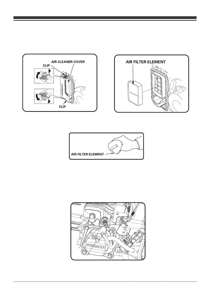 (b) Saturez l’élément en mousse du filtre à air avec de l’huile moteur propre et mettez-le dans un