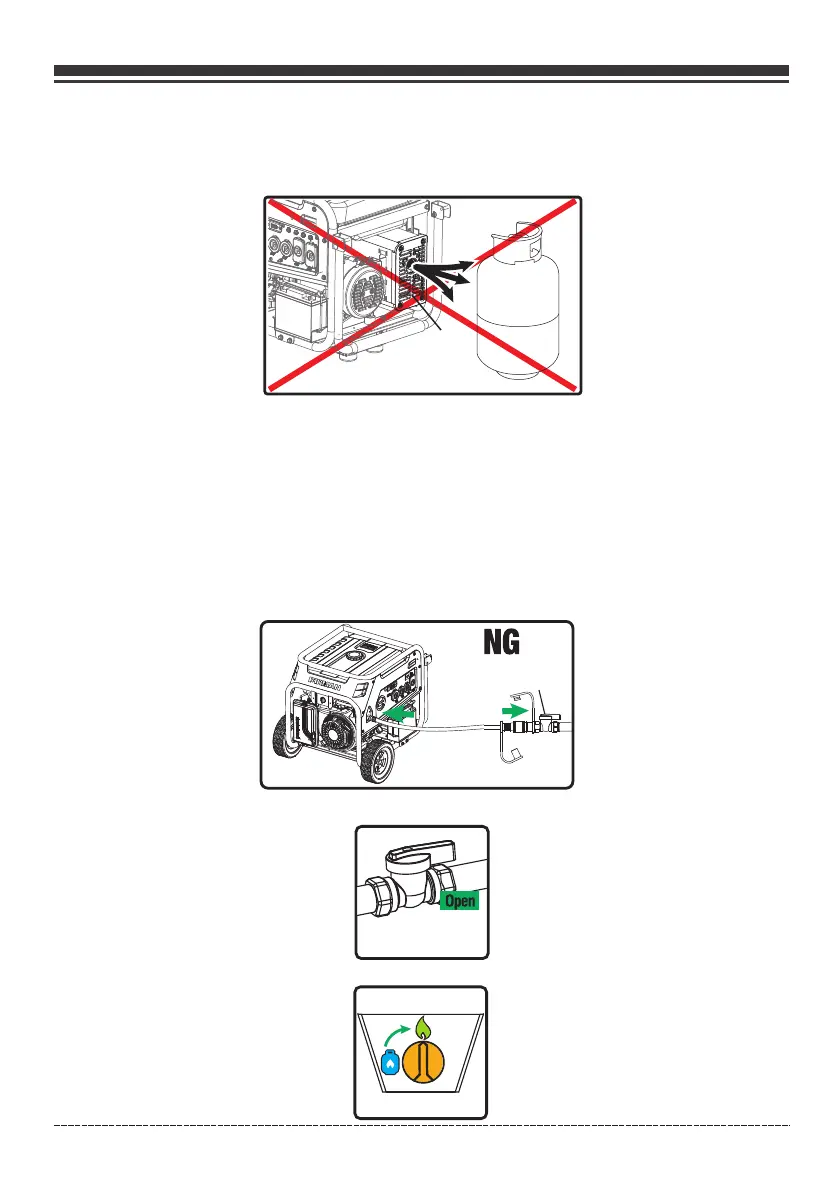 3. Connect the NG hose to both the NG source and portable generator LPG/NG Hose Connector (inlet).