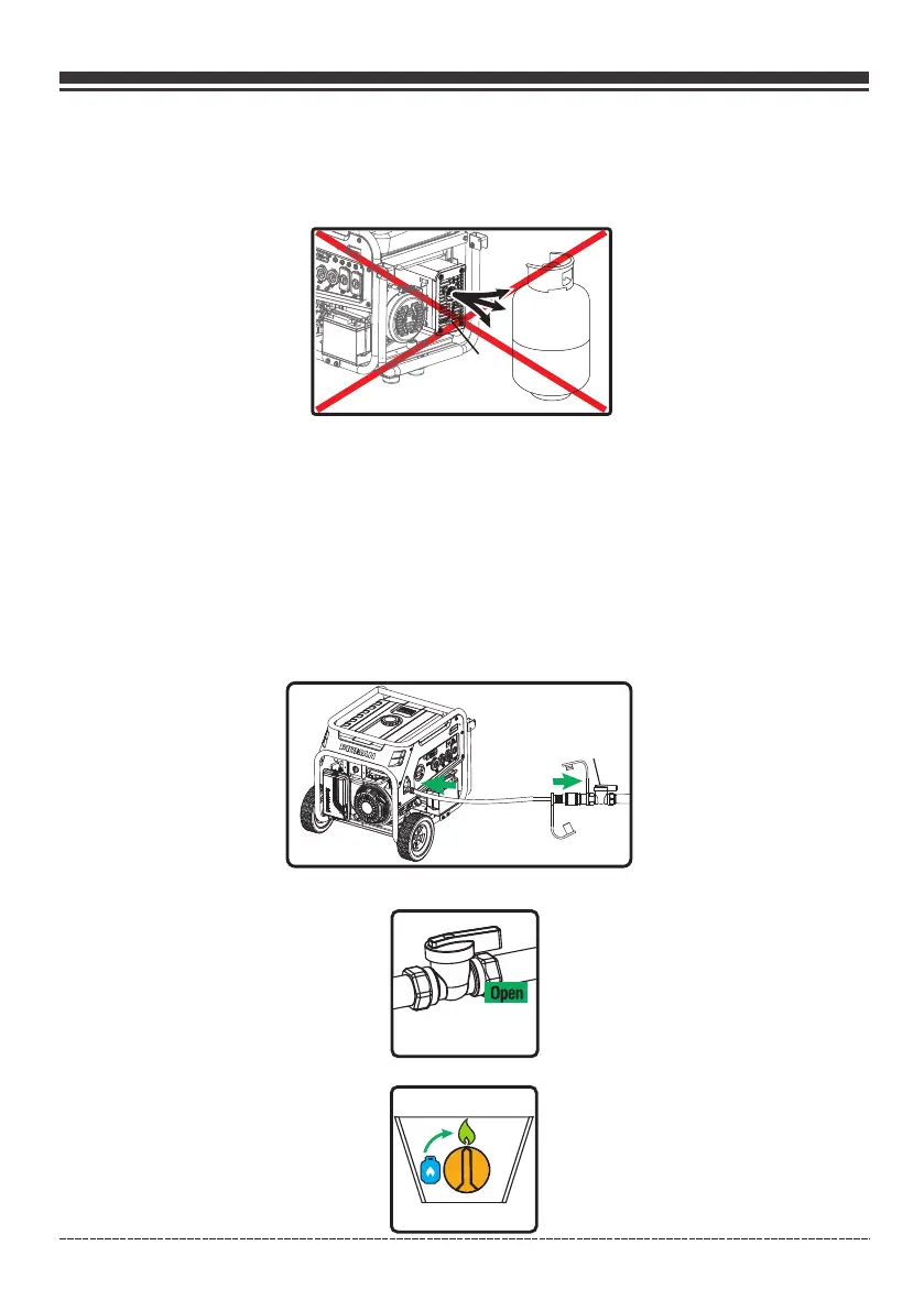 Colocar el cilindro de GLP en el extremo del generador cerca del mango, donde el aire del