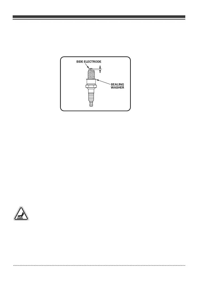 (e) Coloque la bujía en posición y enrósquela a mano para evitar que se enrosque en forma torcida.