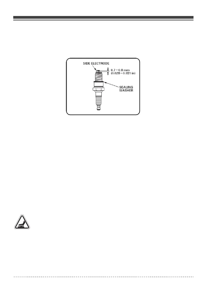 Adjust the electrode gap to 0.7 to 0.8 mm (0.028” to 0.031”).