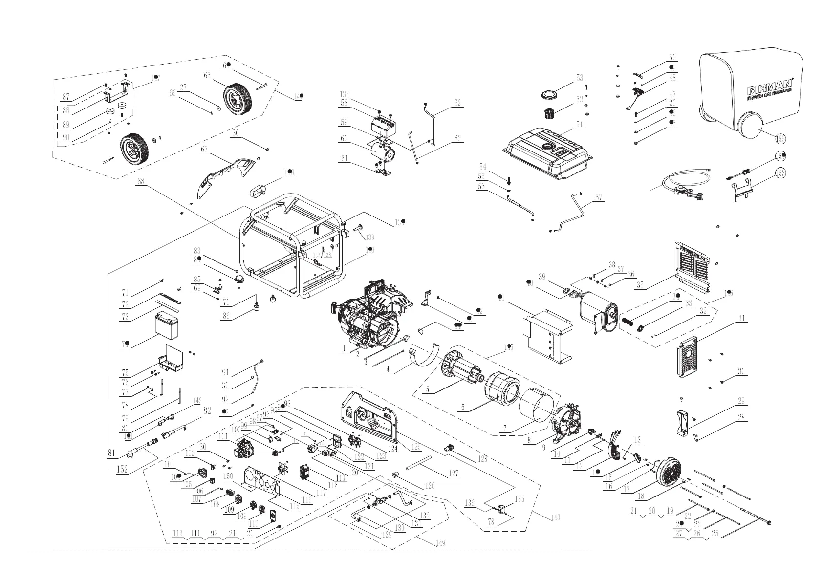 Firman T07571 - T07571 Parts Diagram; Engine and Generator Components Diagram; Frame and Wheel Assembly Diagram; Fuel and Control Components Diagram