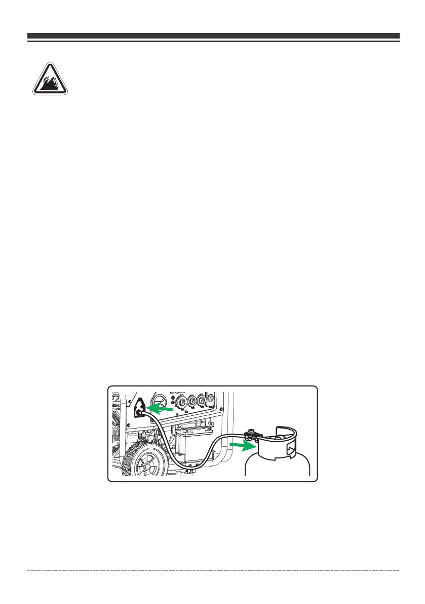 de la manguera de GLP / GN (entrada) del generador y la conexión de suministro de combustible.