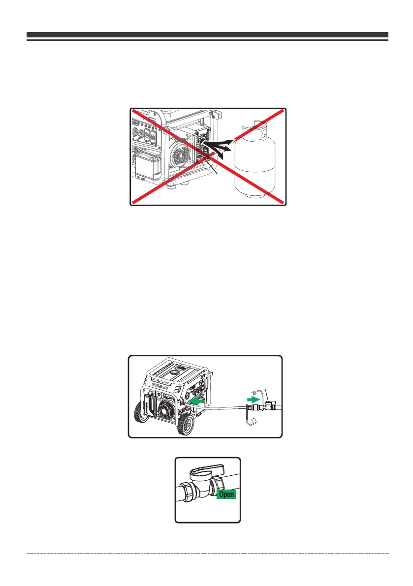 Colocar el cilindro de GLP en el extremo del generador cerca del mango, donde el aire del