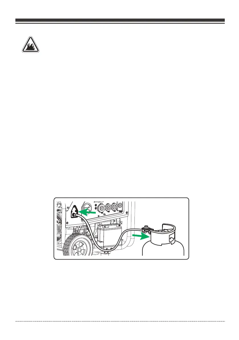or cap from the LPG cylinder valve. Attach the LPG regulator to the cylinder valve. Do not use a