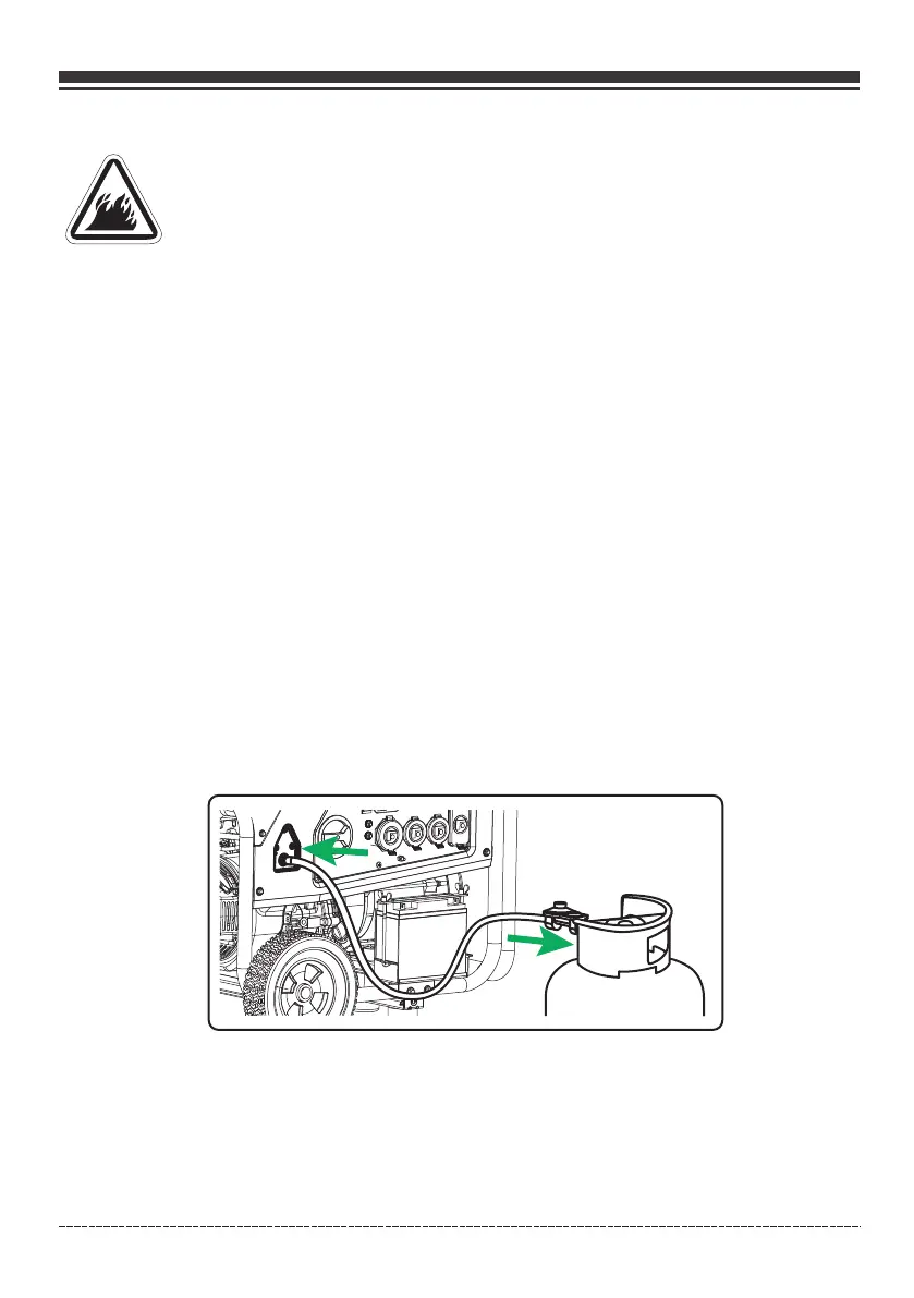 or cap from the LPG cylinder valve. Attach the LPG regulator to the cylinder valve. Do not use a