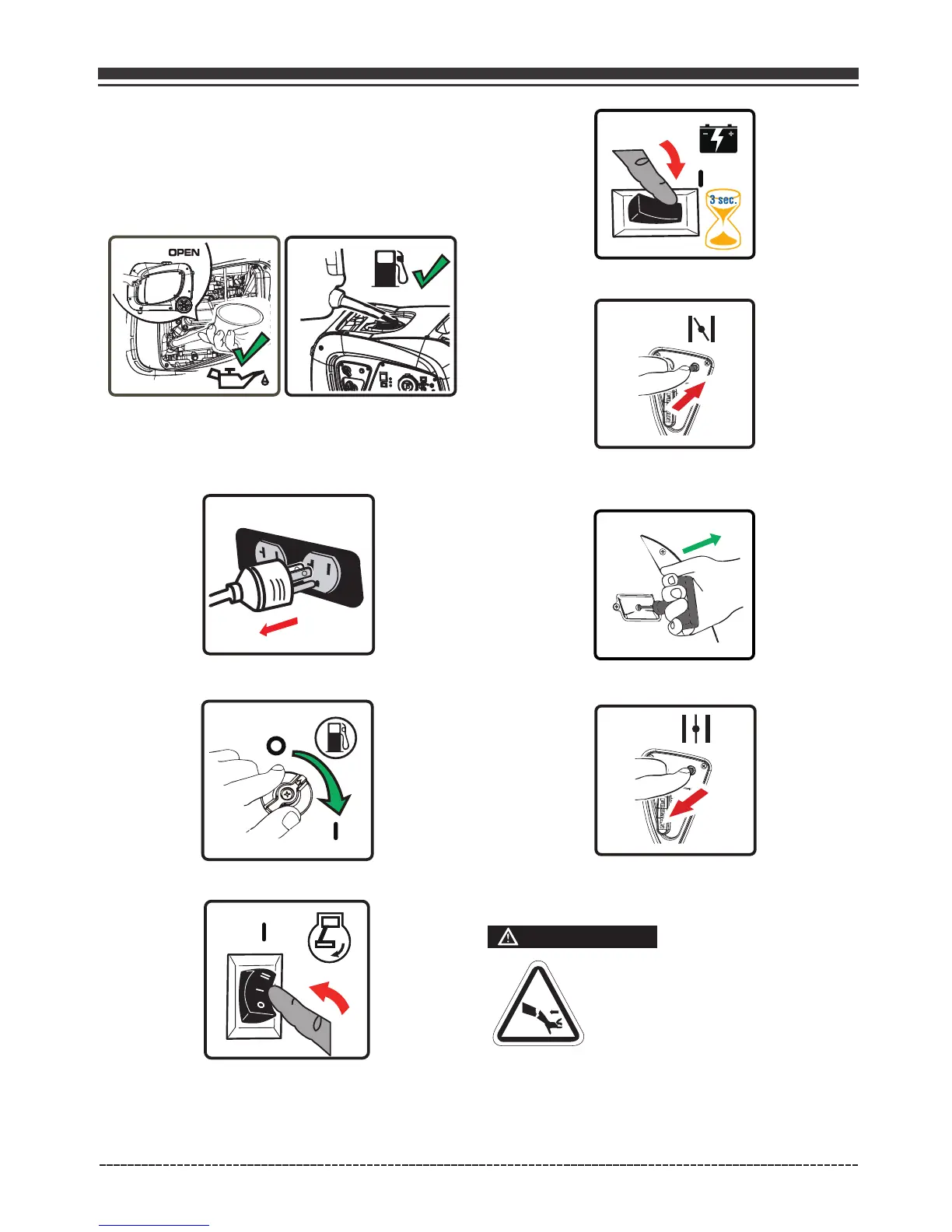 1. Antes de arrancar el generador, compruebe