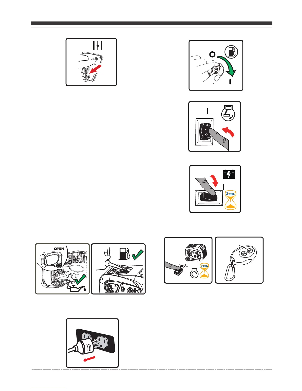 1. Antes de arrancar el generador, compruebe