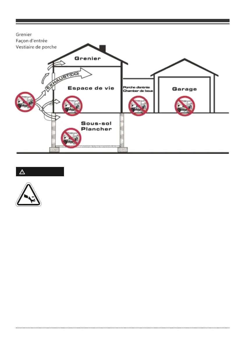 vous pouvez laisser aller ce qui peut •Ne pas basculez le moteur ou l'équipement à causer des OS