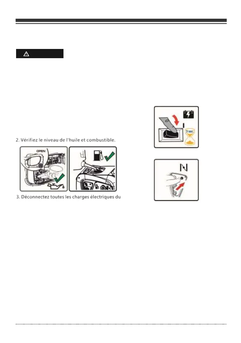 1. Avant de démarrer le générateur, vérifiez s'il y a des pièces