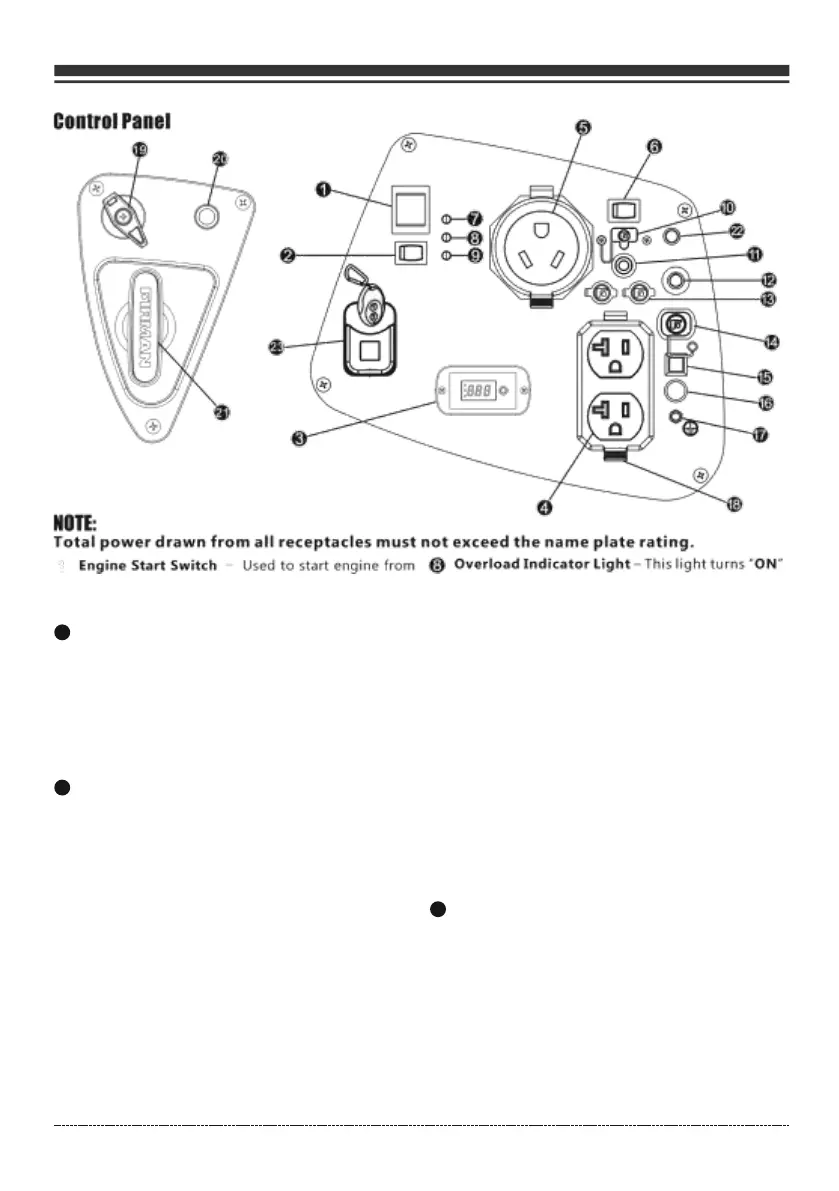 the starter motor(Electric start model only). To start when the generator is overloaded and will cut engine, press and