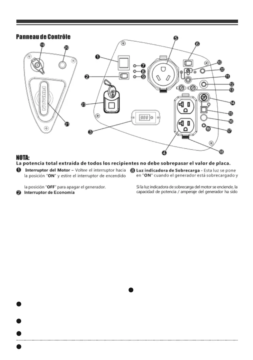 de retroceso para encender el generador. Voltee hacia cortará poder de los receptáculos.