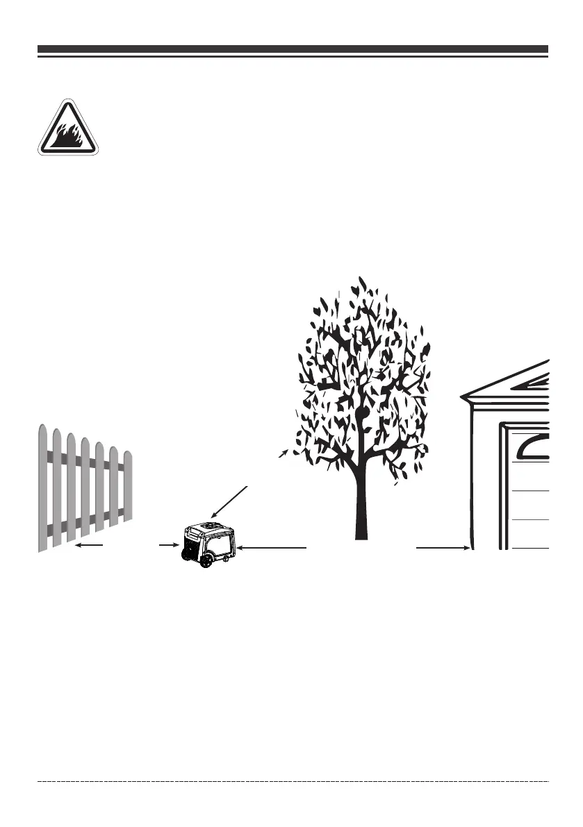 Keep portable generator at least 5 ft. (1.5 m) from any structure, trees or vegetation over 12