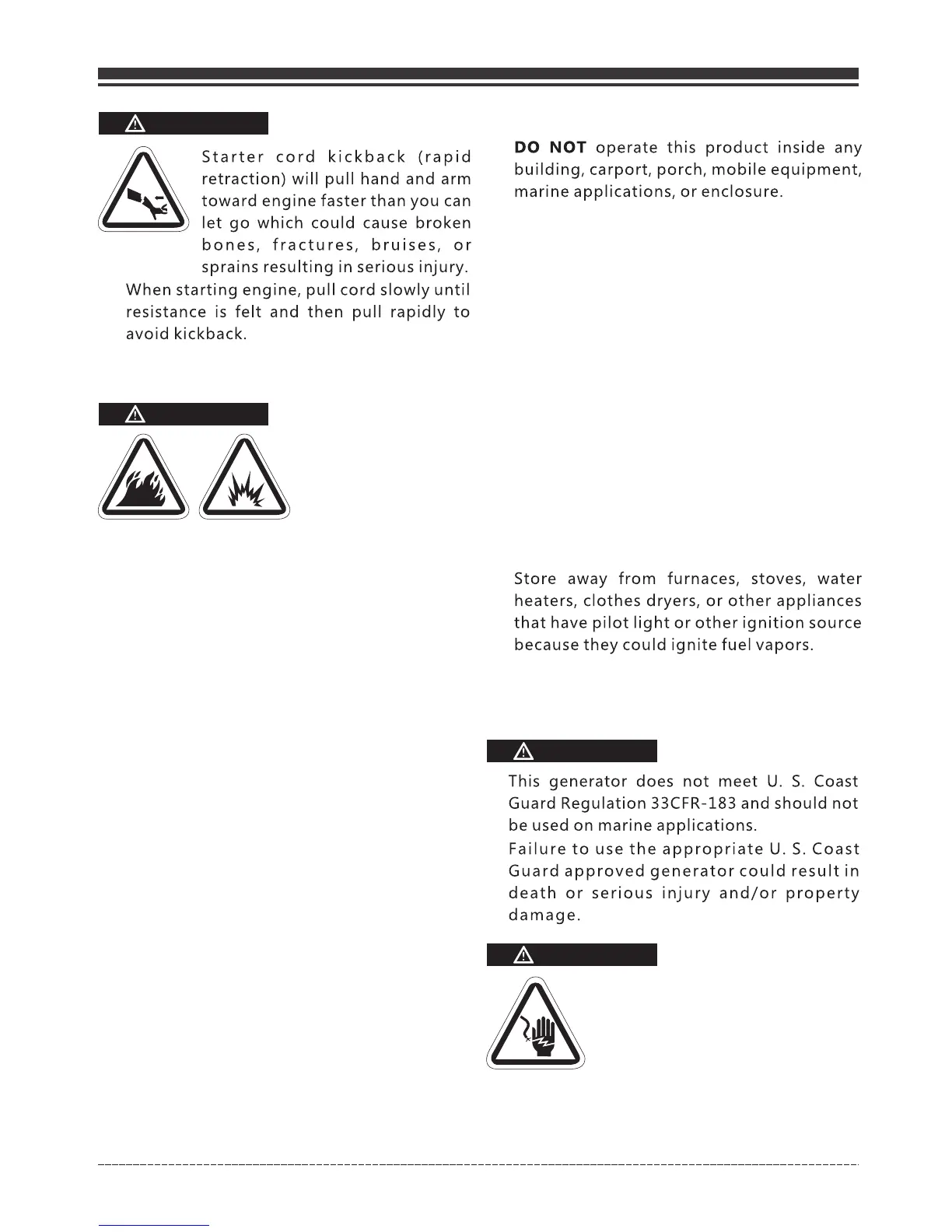 pilot lights, heat, and other ignition sources.