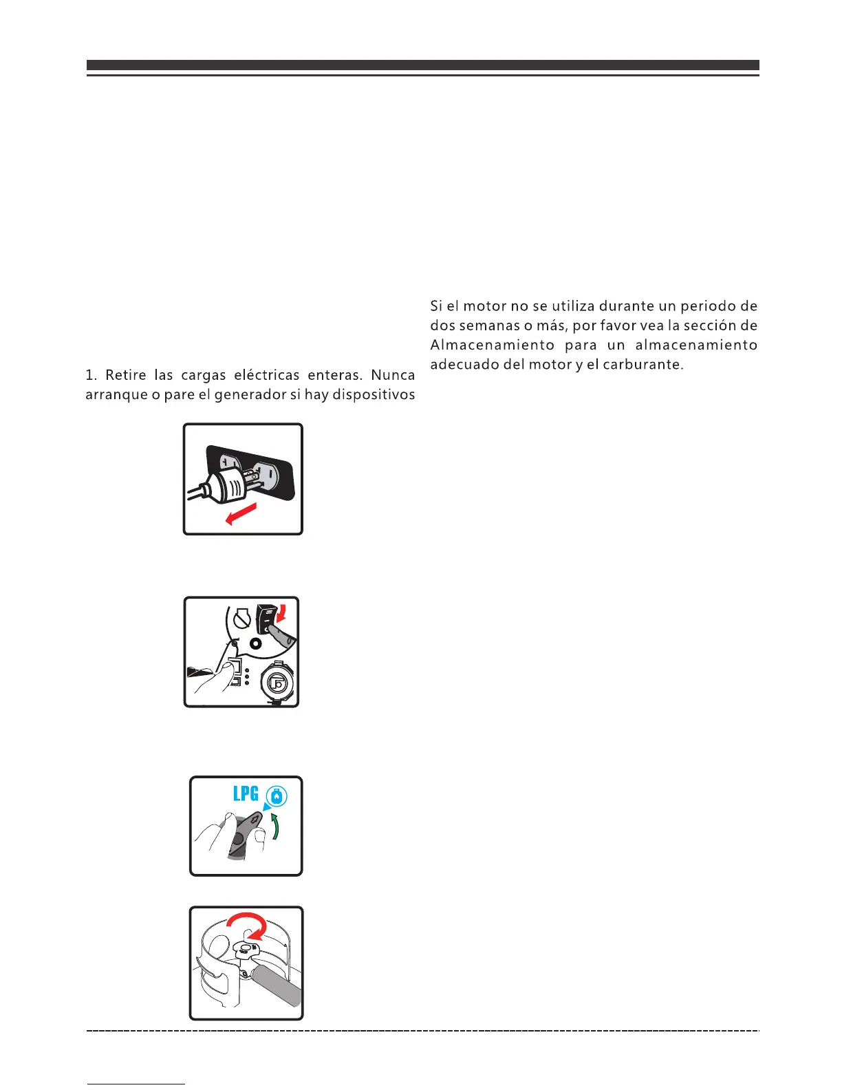 Desconecte el cilindro de GLP del generador